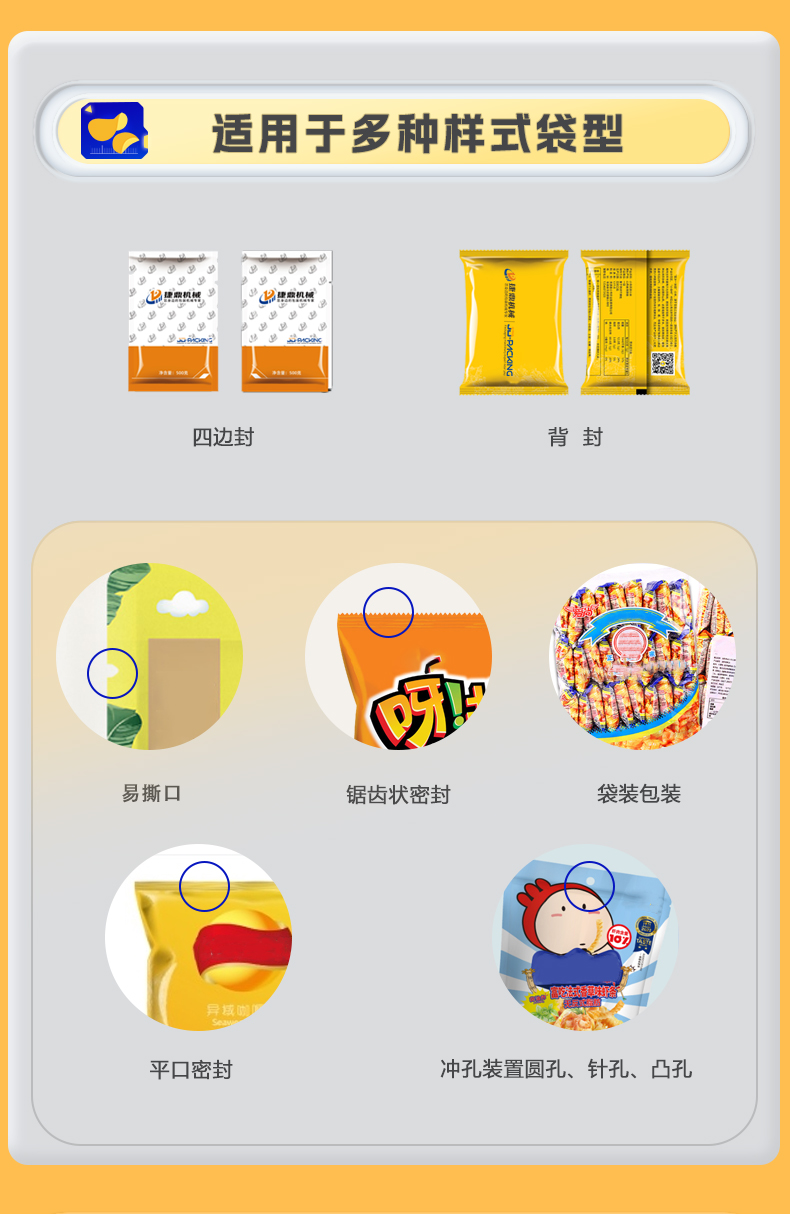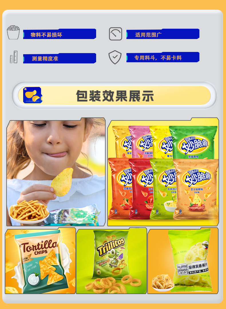 捷鼎生產(chǎn)土豆片專(zhuān)用包裝機(jī),適用于土豆片、爆米花、薯?xiàng)l、香蕉片以及其他經(jīng)過(guò)氮?dú)馓幚淼呐蚧称?,能夠有效防止食品變質(zhì)或擠壓,從而延長(zhǎng)儲(chǔ)存時(shí)間。